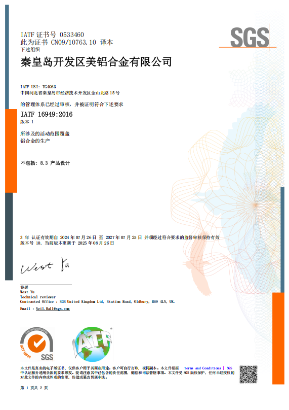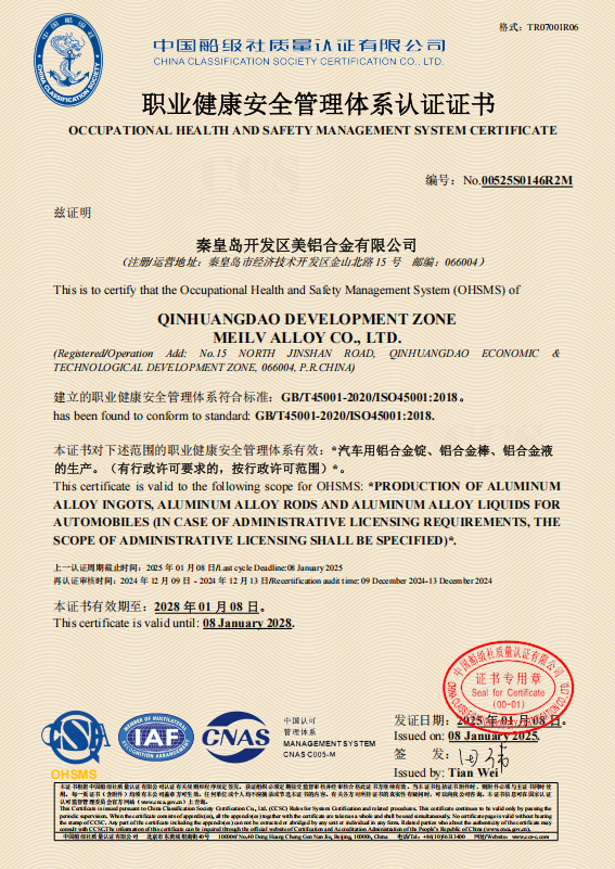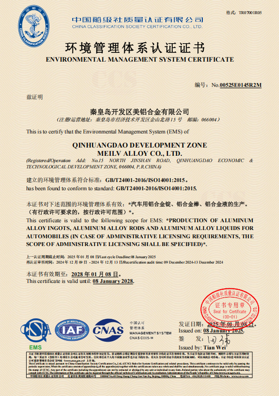 Qinhuangdao Development Zone Alcoa Alloy Co., Ltd. was established in 2001 with a registered capital of 150 million RMB, covering an area of 51000 square meters and employing 130 people. It is a wholly-owned subsidiary of Lizhong Alloy Group. The company is positioned in the research and development, production of high-performance aluminum alloy lightweight materials for automobiles, and direct supply of aluminum liquid, to achieve process matching, and to save energy, reduce emissions, and lower costs for customers. The company's main products include cast aluminum alloy ingots, cast aluminum alloy liquids, and high-end aluminum alloy bars, with an annual production capacity of 160000 tons.